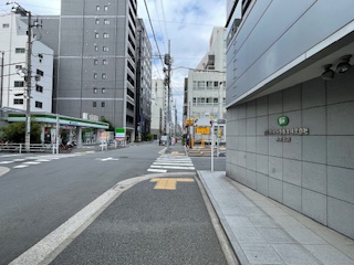 ⑦「RENOBLE NINGYOCHO」と書かれた建物が当社がございますビルになります。自動ドアの入り口からお入りいただいた後、突き当り左手のエレベーターで3階までお越しください。