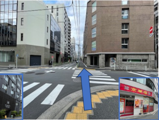 ⑥左手にMIMARU SUITES 東京日本橋、右手に京華楼がある交差点を横断し、そのまま直進してください。